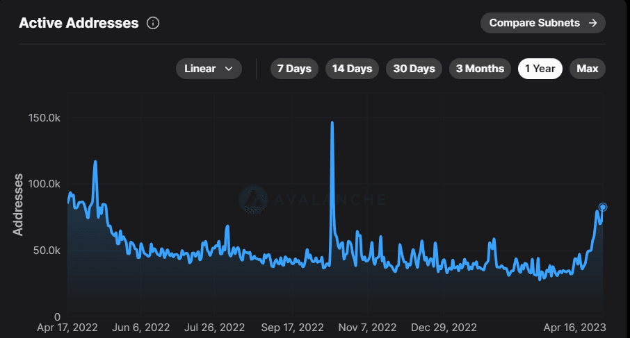 Ava Labs has introduced Evergreen subnets, a new feature on the Avalanche network to accelerate its adoption by financial institutions. This tool enables the creation of permissioned networks that meet the specific requirements of institutions while still benefiting from the security of a public blockchain. Institutions can set up their private networks with their unique consensus mechanisms, validator sets, and customizable gas tokens while still being anchored to the broader Avalanche network for scalability, deeper liquidity, and interoperability on the back of the Avalanche Warm Messaging system. Wall Street firms like Wisdom Tree and Cumberland are already experimenting with the network to build out the "spruce" testnet for executing foreign exchange and interest rate swaps and planning test tokenized equity and credit issuance if preliminary tests yield positive results. The trend of subnet adoption is evident as Avalanche's active addresses hit a six-month high in April.