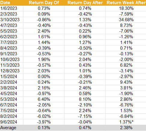Figure 1: Bitcoin’s price return following Nonfarm Payroll release