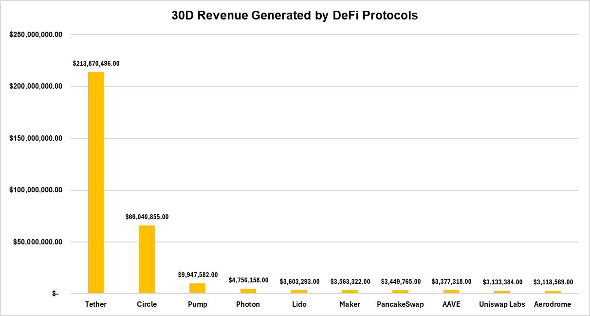 During market downturns and bearish periods, it's essential to take a step back and evaluate which businesses have true fundamental value versus those driven by hype. For instance, DeFi has shown relative resilience compared to other crypto sectors. When analyzing revenue generation across the industry, DeFi protocols consistently stand out, as illustrated below in Figure 2.