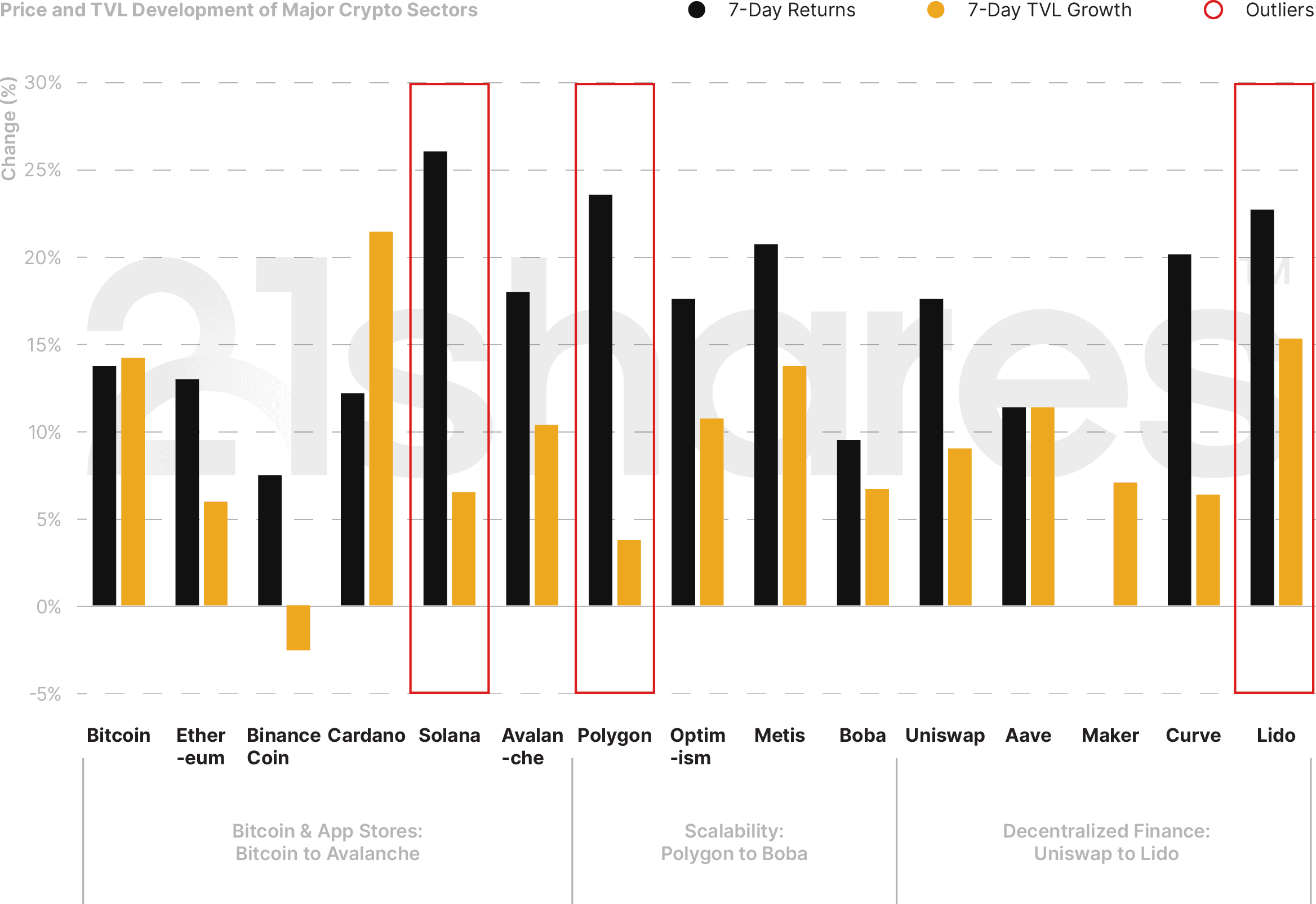 Figure 1: Weekly Price and TVL Performance of Major Crypto Categories