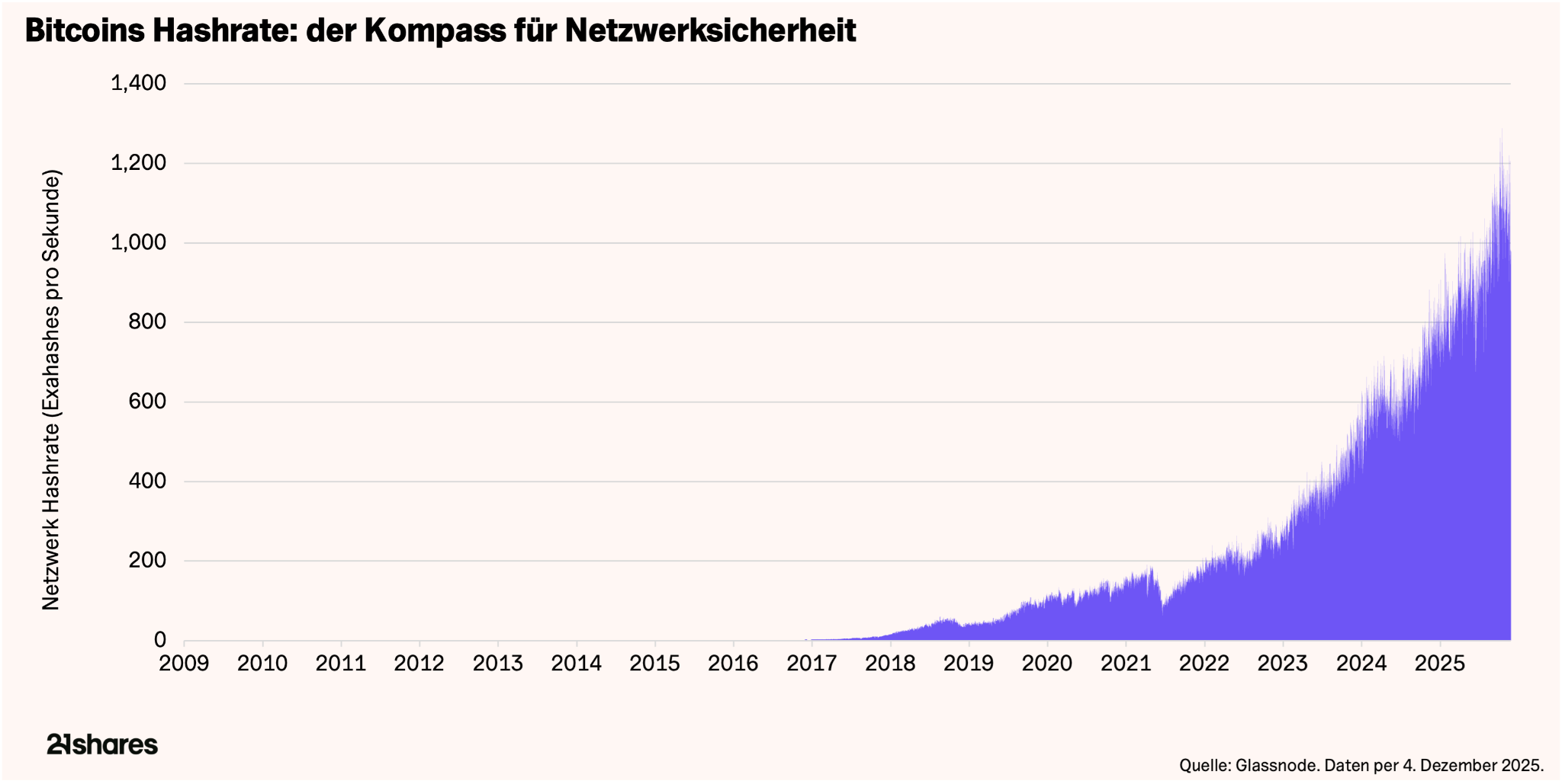 Die Sicherheit von Bitcoin wird am besten durch seine Hashrate gemessen; die Rechenleistung, die das Netzwerk durch Mining schützt. Im Gegensatz zum Goldabbau nutzen Bitcoin-Miner spezialisierte Maschinen, die erhebliche Mengen Strom verbrauchen, um Transaktionen zu verifizieren und abzusichern.