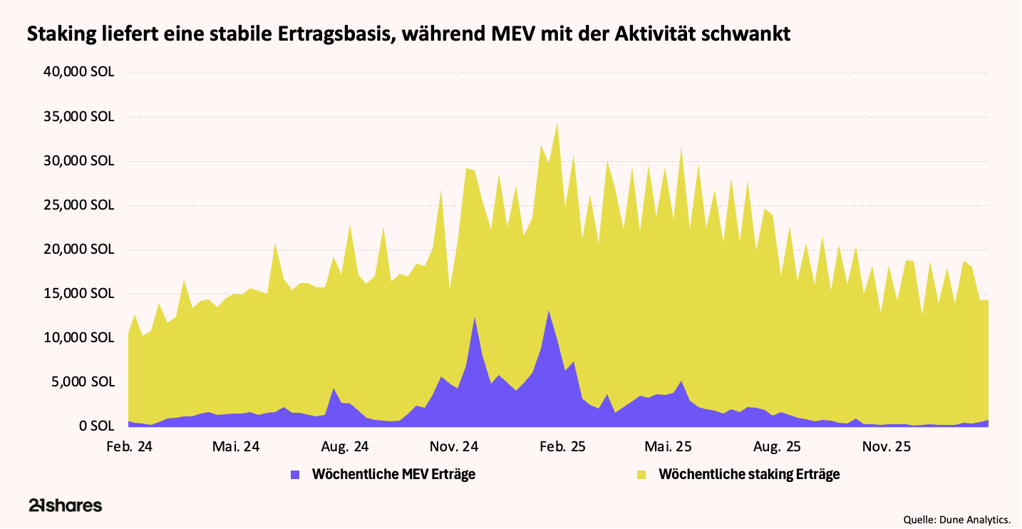 Der zusätzliche Yield stammt aus ausführungsbezogenen Einnahmen, die vor allem in Phasen hoher Netzwerkauslastung entstehen. Sinkt die Aktivität im Netzwerk, gehen diese Einnahmen zurück, da weniger Nutzer für Priorisierung oder Ausführungsoptimierung zahlen.