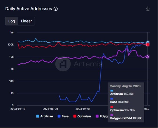 While the initial shift was prompted by a meme coin frenzy, the ongoing surge in user activity signifies strong enthusiasm for the Ethereum ecosystem. Moreover, Base holds significant growth potential due to Coinbase's extensive 110M user base, which can seamlessly transition to the on-chain ecosystem through user-friendly interfaces. In line with this, Coinbase revealed “on-chain summer”, an initiative to introduce users to Base's vibrant ecosystem and showcase the network’s enhanced performance. The program was a success as the network logged more than 136K daily active users at its peak, surpassing Optimism and Polygon. Whether Base can sustain its user base in the long run, remains to be seen. However, it will certainly be a key network to look for over the next few months.