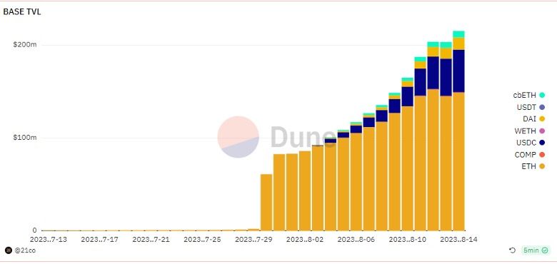 Optimism’s modular framework, OP Stack, maintains its position as the leading scaling solution for Ethereum, with established players like Binance, Coinbase, Worldcoin, and A16z all opting to leverage the solution to build their customized networks. This week, Coinbase launched public access to its scaling solution dubbed Base, leveraging the OP Stack. Although developers have been allowed to deploy applications and migrate their capital since mid-June, the official bridge opened last week, allowing users to migrate their capital using official channels. That said, Base experienced tremendous growth quickly, amassing close to ~$200M in AuM in less than three weeks.