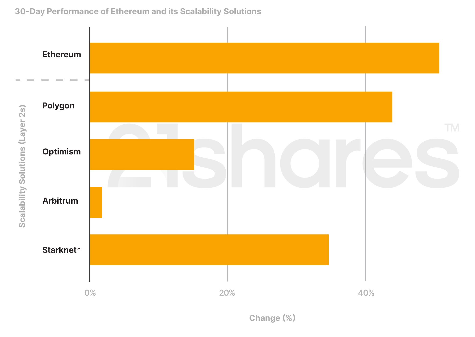 Figure 2: Monthly performance of ETH and its leading scalability solution