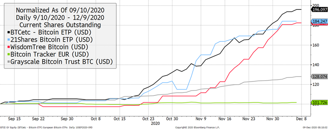Our 11 products appeared in the December 2020 ETP Snapshot published by Digital Asset Research. You can read the full report here.
