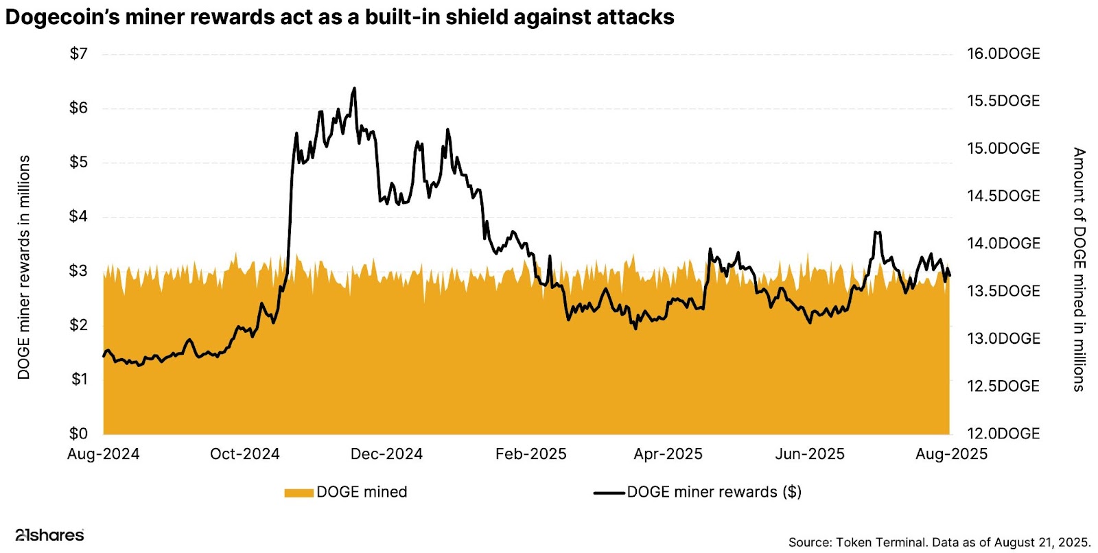- Community loyalty: Dogecoin’s grassroots culture, which helped it grow from meme to movement, makes mass defection culturally unlikely, particularly seeing as miners have enjoyed over $1B in block rewards over the last year.