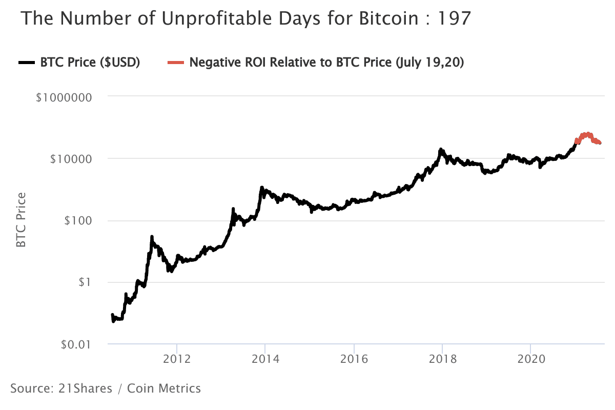 As the crypto industry is relatively nascent, it is a salient attitude to keep a long-term perspective on the markets. Despite the recent price developments mainly due to the ban in China affecting the long tail of cryptoassets, Bitcoin is up 223% in the past 12 months. It’s important to note that the cryptoasset has traded in the negative territory relative to today’s price ($29.9K) for only 197 days combined or for a little over six months out of 12 years since inception. To put things in perspective, this represents only 4% out of more than 4,000 days. As such, this is another reason to remain positive, especially in these unprecedented times for the Chinese market. The ban has potentially evaporated hundreds of billions of dollars in trading volume coming from China. For the record, last year, the total bitcoin trading volume in China was ~198 billion.