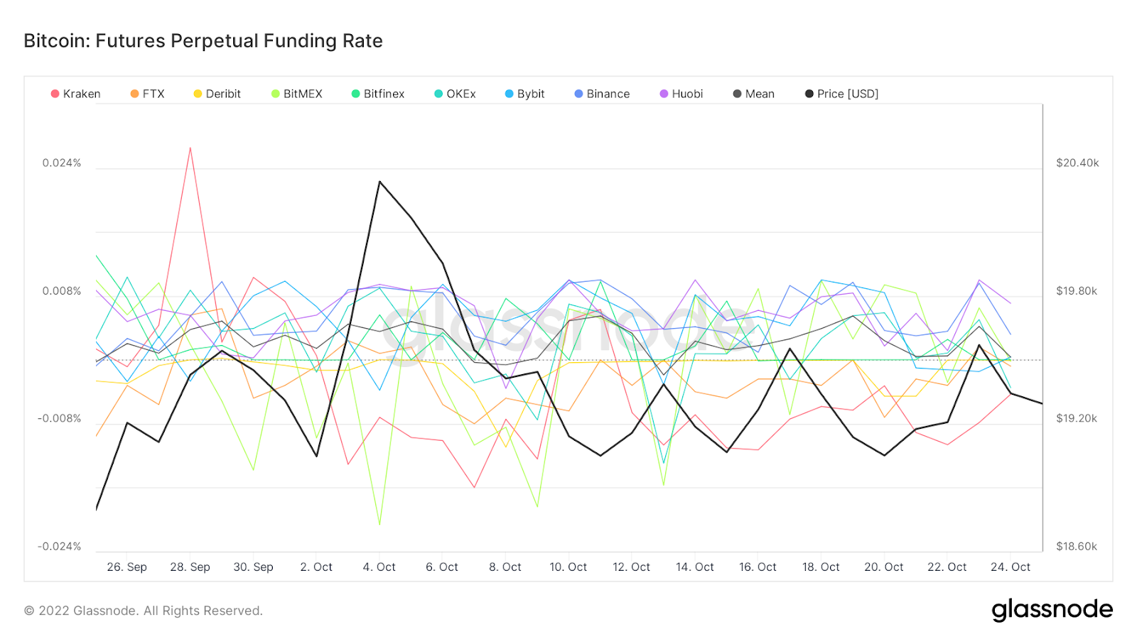 The chart above plots the average funding rate (in %) set by exchanges for perpetual futures contracts. A negative funding rate, as seen in Figure 2, means that short positions have to pay long positions periodically and usually indicates a bearish sentiment since more short traders are dominant.
