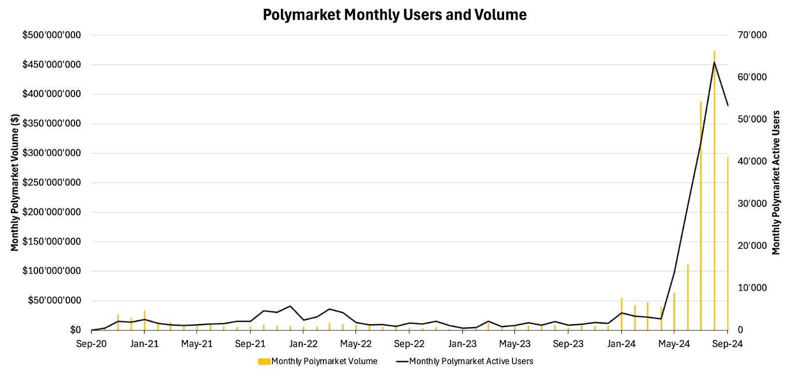 Figure 2 – Polymarket Monthly Users and Volume