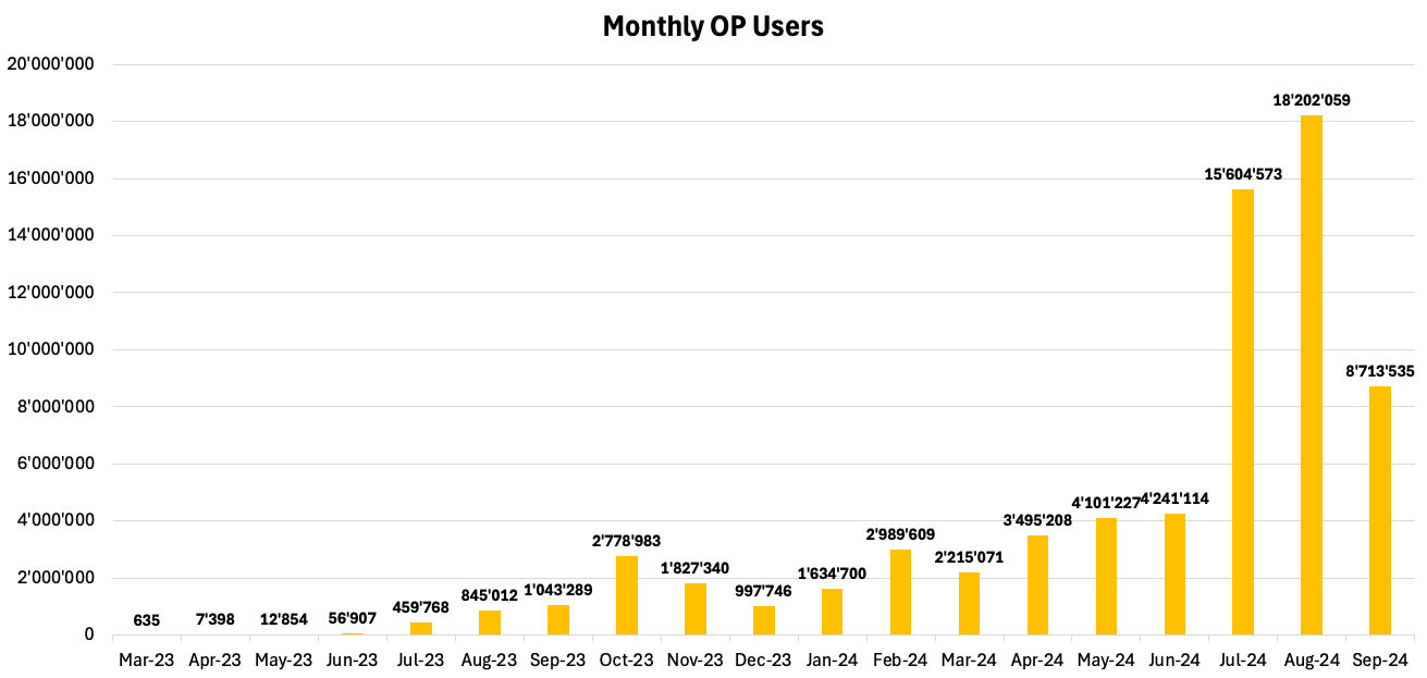 On one side, Account Abstraction refers to the ability to customize blockchain accounts and make them smarter. In this regard, Ethereum’s Pectra upgrade will be one of the key milestones to enable this functionality on the network level, thus making it easier to create smarter wallets. That said, with Coinbase’s smart wallet being the first major adopter of the ERC-4337, its growth has been impressive so far, onboarding a total cumulative number of ~37K users, as seen in Figure 7.