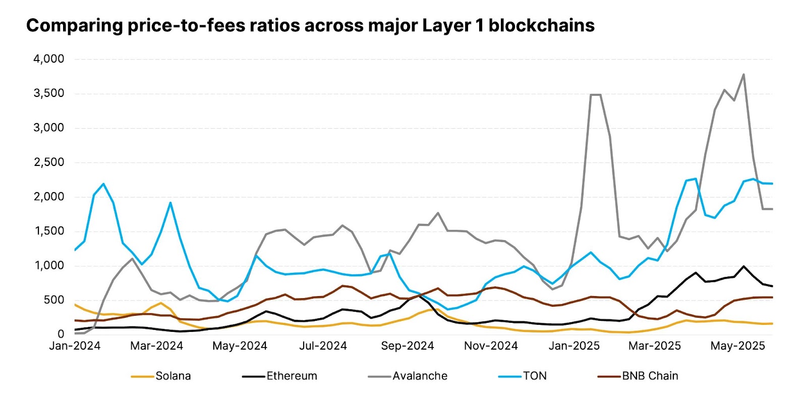 Figure 2 – Comparing price-to-fees ratios across major Layer 1 blockchains