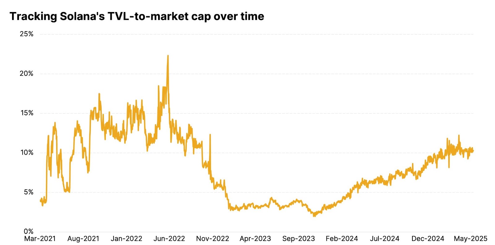 Figure 8 – Tracking Solana’s TVL-to-market cap over time