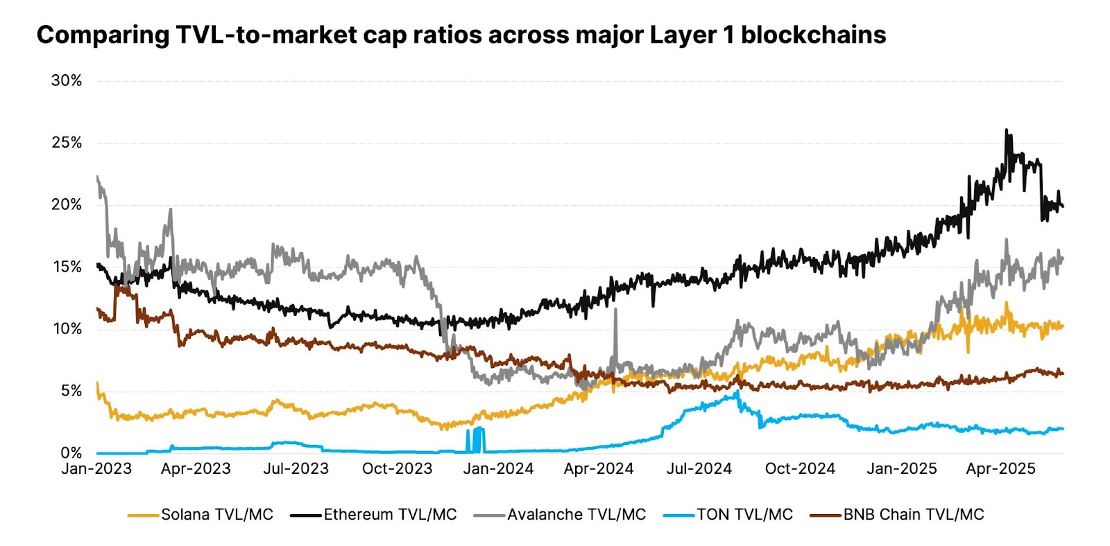 Figure 7 – Comparing TVL-to-market cap ratios across major Layer 1 blockchains