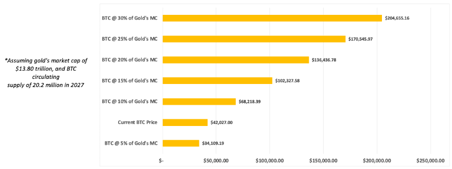 Figure 5: Hypothetical value of BTC as a % of gold’s market cap in 2027