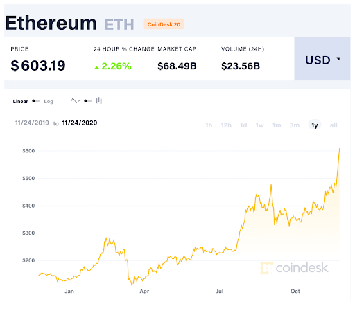 Why Does It Matter? Ether reached its highest value since late May 2018 of over $600 (+365% YTD) in anticipation of the soft launch of ETH 2.0 — Ethereum’s most ambitious upgrade. The move from Ethereum 1.0 to Ethereum 2.0 will be released in multiple phases, starting with Phase 0 rolling out next week on December 1st, as announced by the Ethereum Foundation.