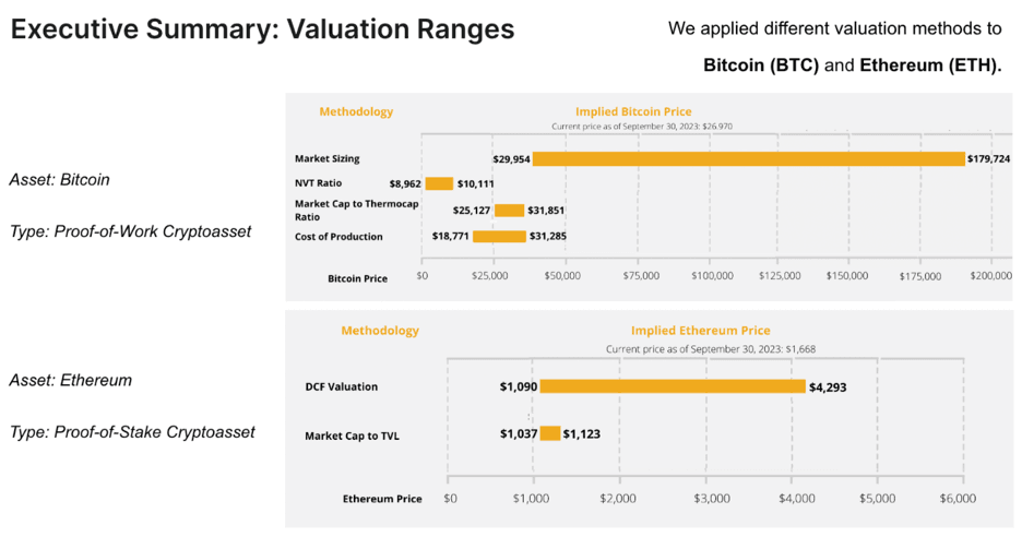 • Ethereum valuation: We value Ethereum using an intrinsic valuation computed with a discounted cash flow (DCF) method.
